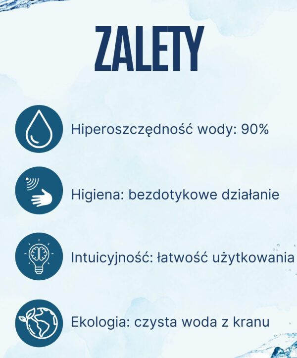 ✔ Detektor obecności na podczerwień – automatyczne włączanie i wyłączanie wody.